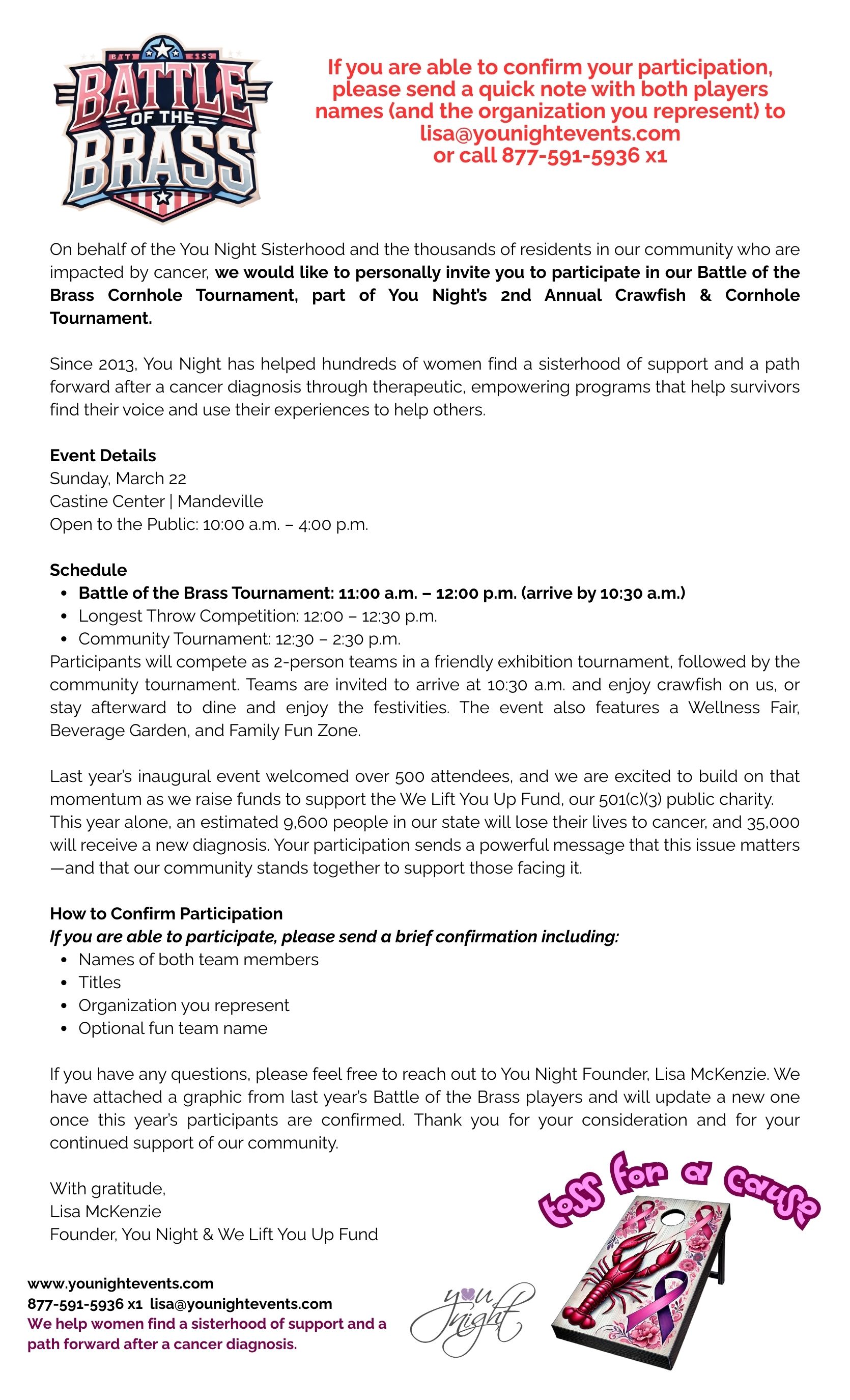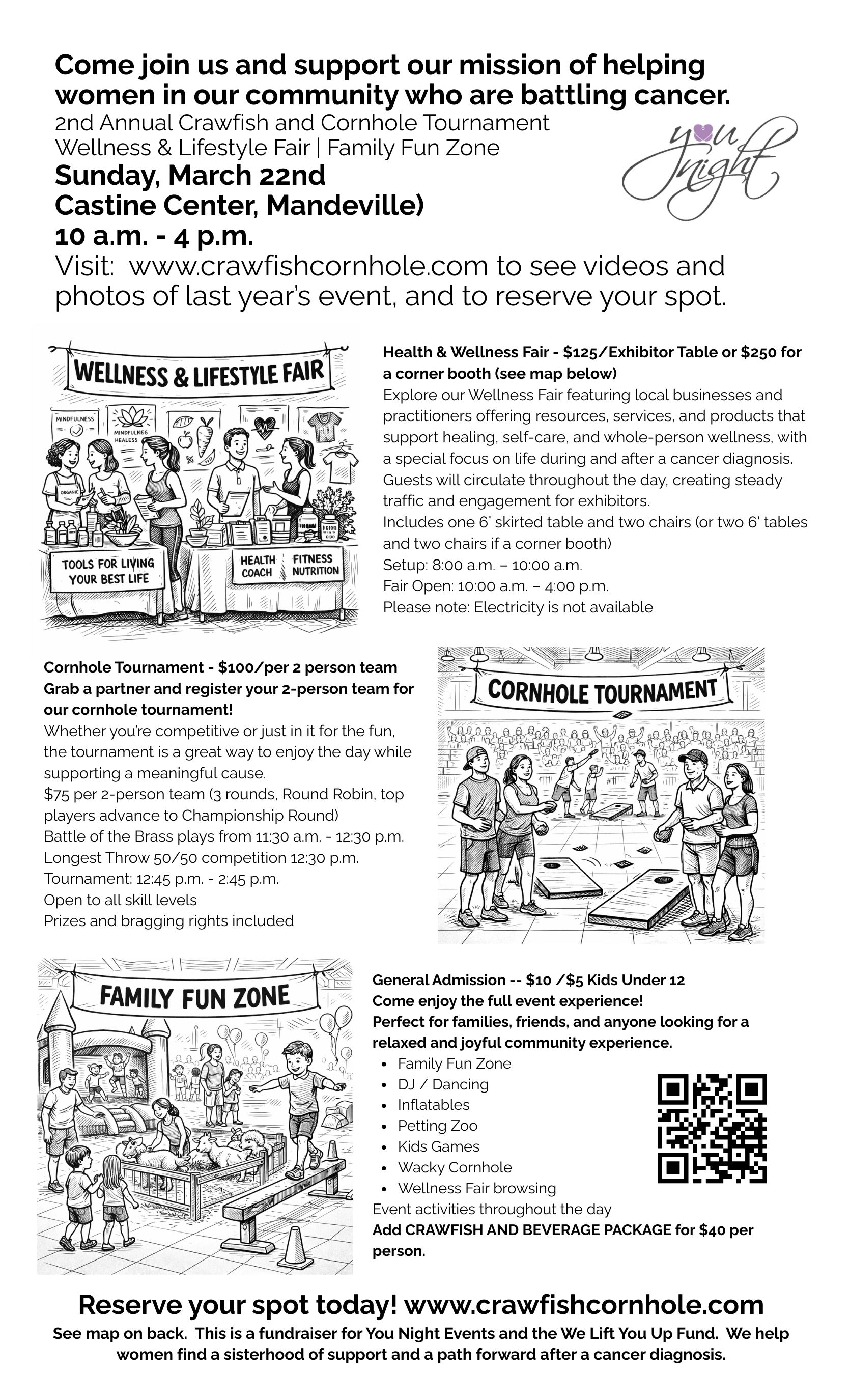 Thank you to everyone who came out to our first event! It was a huge success! We had 45 sponsors at our Wellness Fair plus tons of guests in attendance and a lively cornhole tournament! We look forward to seeing everyone on March 22nd, 2026!